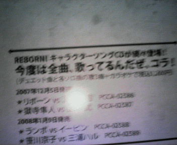 今日はテニミュのDVDを見せてもらいました! 8時間くらい!! ことあるごとにリボ話振ったのは正直スマンかった しかも骸のCD貸してもらっちゃったv 今度は立海後半ですよね 今日の私的まとめ ・柳はどれとっても美味しい ・米 ・どこかに生えていたものをそのまま刈り取って来たように自然な跡部と忍足 ・何かやったのは全部やぁぎゅっ ・柳が一番イケメン ・柳が一番可愛い ・王子はそのままでいて ・跪け崇めろ奉れって言われたい(歌詞うろ覚え) ・リボーンがもしミュージカルになったとしてもまず雲雀役はイケメンだから見たくない 補足 弟の部屋からかっこいいJポップが聞こえます 姉の部屋はみんなの歌みたいなサンバです死にたい